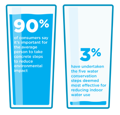 消费者并没有把他们的个人使用与水危机联系起来。90%的人认为普通人应该采取具体措施减少对环境的影响,但只有40%的人觉得有责任做出改变。